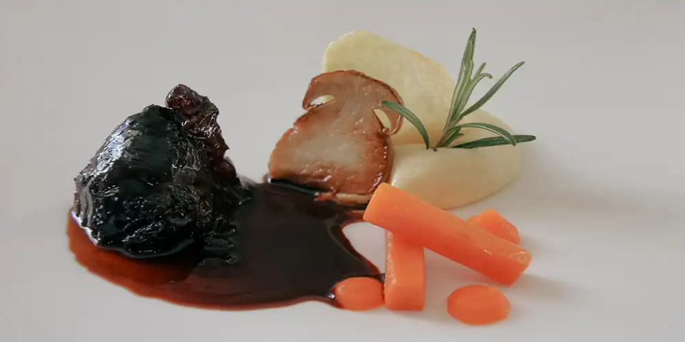 In der Welt der gehobenen Küche sind geschmorte Kalbskopfbacken ein echter Genuss, der die Sinne verwöhnt und Gaumenfreuden bereitet. In Kombination mit cremigem Kartoffelstock und köstlich glasierten Rüebli entsteht ein harmonisches Zusammenspiel von Aromen und Texturen, das jeden Feinschmecker begeistert. Dieses raffinierte Gericht vereint Tradition und Moderne auf dem Teller und ist ein Fest für alle Sinne.